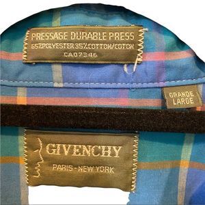 Givenchy pastel blue plaid long sleeve button front polyester/cotton shirt large EUC