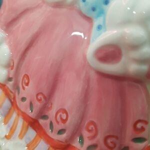 GKRO 3D embossed Easter plate, platter. Measures 12" across. Easter bunnies, eggs and chicks. See photos for tiny chips on top of plate. There are also about 5 tiniest chips around outside edge. Some crazing mostly on one side of back of plate in second last photo. Smoke free home.