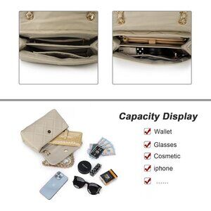 Capacity:This bag has two compartments and two inner pockets, which can hold daily necessities such as phones, glasses, keys, cosmetics, etc. when going out. Zipper pockets can also hold important cards and documents, which is relatively safe.