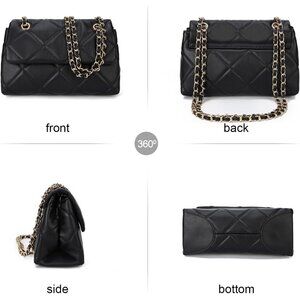 Design:The pattern adopts diamond pattern splicing. The shoulder strap is designed with a combination of hardware and leather, and can be worn on one shoulder or crossbody.