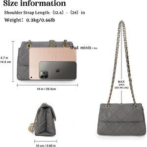 Design:The pattern adopts diamond pattern splicing. The shoulder strap is designed with a combination of hardware and leather, and can be worn on one shoulder or crossbody.