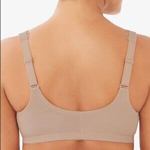 Elevate the everyday in stretch lace in the Glamorise front-close WonderWire bra. What’s not to love about a bra as comfortable as your everyday bra, but as sexy as sexy gets? Designed with an exclusive underwire and a secure front clasp, the stretch lace makes everyday that much more beautiful.Front close bra provides great support and all day comfort. The beautiful stretch lace cups give your bust a gorgeous look and natural shape. The worry free front closing clasp is designed to keep you secure all day long. Surrounded by three different fabric layers the underwire not only prevents wire-poke but also shapes your bust beautifully. Colour is cafe (nude). In like new condition, no flaws! Size 46F.