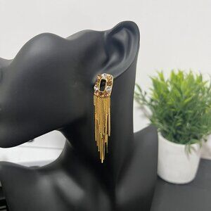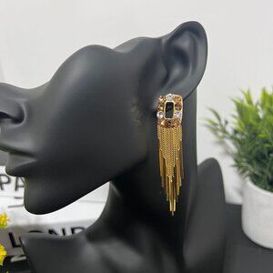 Glamorous Korean Zircons Stud Gold Chain Tassel Earrings