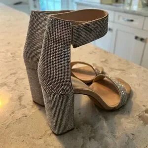 Step into elegance with these stunning silver rhinestone heels. Perfect for any special occasion.