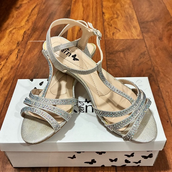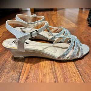 Shine with every step in these glamorous silver rhinestone sandals. Perfect for adding a touch of sparkle to any outfit. Worn one evening for graduation.