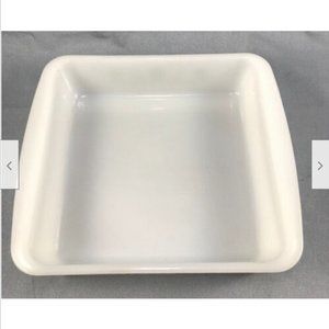 Vtg White Glasbake Square 8" Cake Pan Avocado Primrose Dream decoration, Jeannette Glass
