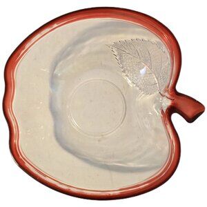 Glass Apple Bowl Red Rim Serving Dish Candy Salad Picnic Party Retro