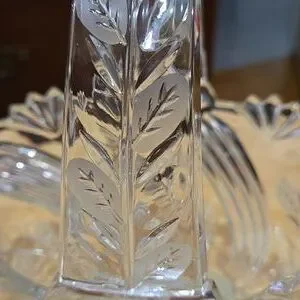 Glass basket, in excellent used condition, no chips or cracks. Beautiful leaf design throughout.