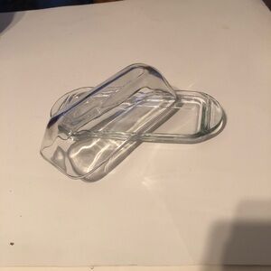 Elegant glass butter dish perfect for any kitchen setting. Its clear design complements any decor.