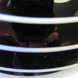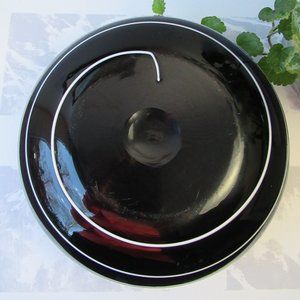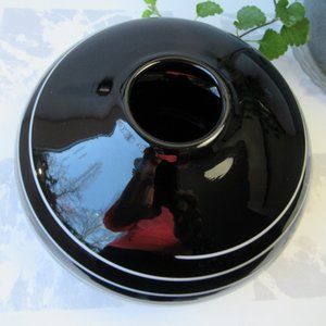 Description. This Glass Flattened Vase in Black with White Spiral is a striking decoration for any room. Made of opaque black glass, the round shape is contrasted by spiral-shaped white stripes on a glossy background. Adding a touch of elegance and sophistication, this vase is a must-have for any modern interior.