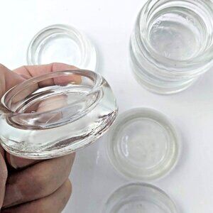 These coasters are made of thick, pressed glass and are designed to be placed under the legs of heavy furniture like chairs, tables, or couches.