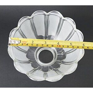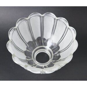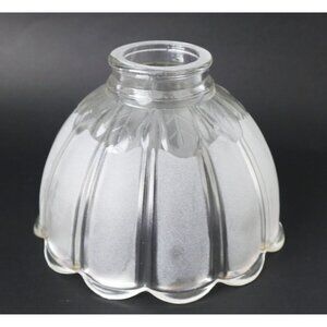 For your consideration is a vintage glass lamp shade with fitter, frosted and clear with a scalloped edge.