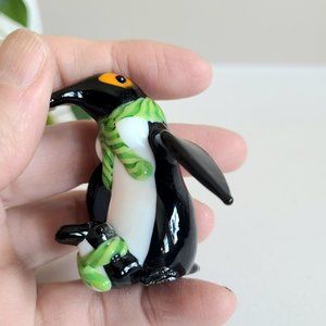 Cute glass Penguin with baby figurine. 2'' tall. Has a damage on his foot. (Hard to see) A little bit shaking when it's standing. Overall is good condition.