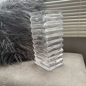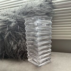 Gorgeous fluted thick glass vase by Abbott Collection. Glass contains small air bubbles and has a very slight frosted effect.