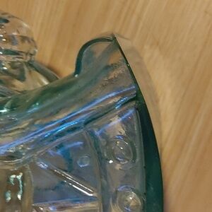 Excellent condition. Very small imperfection on the back bottom, barely visible (last pic). Charming glass jar shaped like a rocking horse. Perfect for decor or storage. Clear glass design.