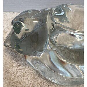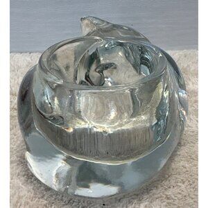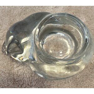 Glass Sleepy Cat Shaped Votive Tealight Candle Holder Clear 4.5" Heavy