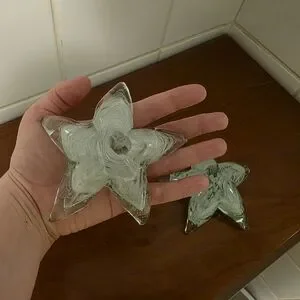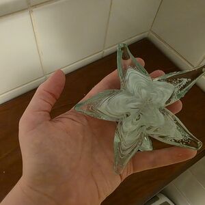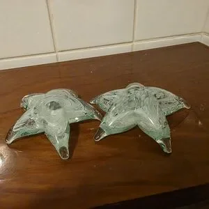 Elegant glass star art decor featuring a beautiful blend of white and clear colors. Perfect for adding a touch of sophistication to any home setting. No chips or breaks. Basically brand new. Listing is for BOTH.