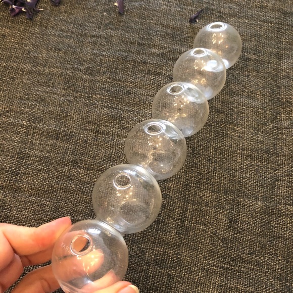 Very cool and modern vase. Almost 10 inches long. All bubbles are connected through the inside and little flowers are adorable in it. Tough Pyrex glass so you can put it in the dishwasher. 🌱🌱🌱🌱🌱🌱