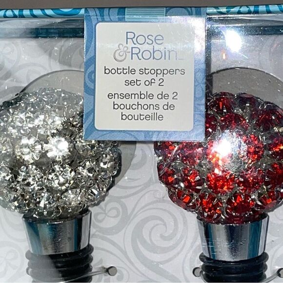 Glass Sequin Bottle Stopper Set of Two Red/Silver NWT