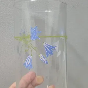 Beautiful vintage glasses. Approx 6 inches tall. 6 with blue flowers and 6 with green and pink. Can be sold individually or all together. 4.50 a glass or 45 dollars for all 12