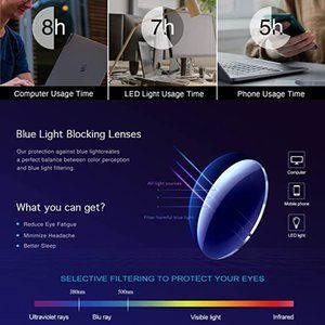 👓 PROTECT YOUR EYES ▶ anti blue light glasses are designed to protect your eyes from extended exposure to harmful blue-violet light. The premium features make the unavoidable hours of screen time more comfortable, too. Whether you’re wearing them for gaming glasses, working into the wee hours of the night, or binge-watching your favorite show, our blue light blocker glasses are the way to go.