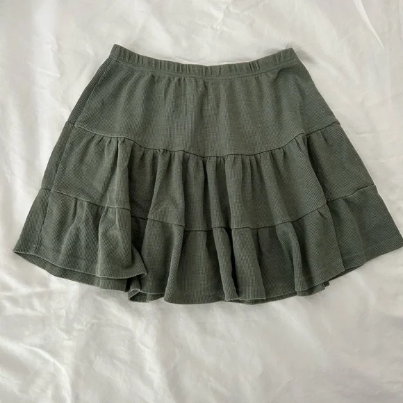 Tiered/Ruffle Mini Skirt Aus Size M / US Size M Elastic waistband Army green Worn - Good condition