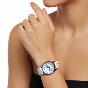 Glee TV Show Wristwatch Quartz Analog Watch w/ Vegan Leather Band White Purple