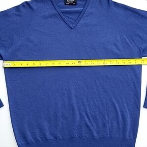 Excellent pre-owned condition, Glenbrae men's blue merino spirol pullover V-neck sweater. Size small.