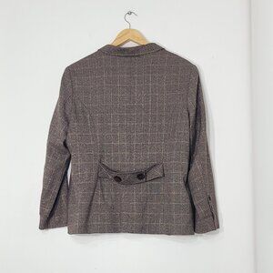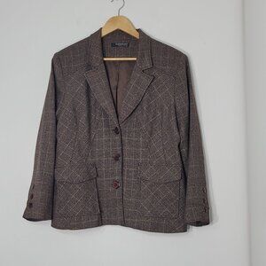 Glensport Women's Brown Plaid Pattern Pockets Button Details Classic Blazer