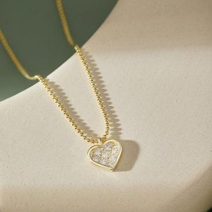 Glistening Gold Heart Pendant Necklace in Sterling Silver