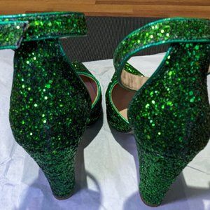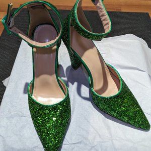 Make a dazzling entrance at your holiday festivities with these enchanting green glitter heels, size 41.