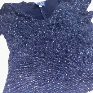 Glitter Dark Navy Blue Onyx Nite Shining Star Women's Sparkly 90’s Top