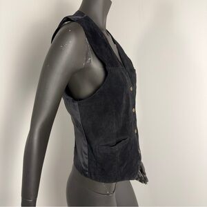 🤠 Global Casual Genuine Leather Black Vest Lined Button-Up Size L