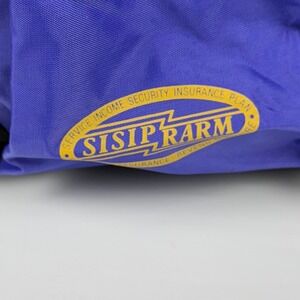 Globetrotter duffel with SISIP RARM crest in purple/black. U-zip main compartment, one end zip pocket, dual front zip pockets, padded carry handles with wrap, adjustable shoulder strap, and small base feet. Fabric and hardware are in good working order. Clean overall with light cosmetic wear/wrinkling from normal use