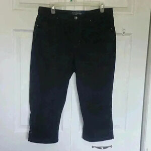 Gloris Vanderbilt The Perfect Fit Missy Cotton Blend Jet Black Capri's Size 12