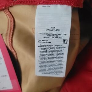 These bold red pants feature a sleek straight-leg design crafted from high-shine faux leather, offering a modern and structured look. The vibrant color and glossy finish make them a standout piece for any occasion.