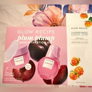 Includes Plum Plump moisturizer and Cloudberry Bright Essence Toner. Ideal for deep hydration and brightening.