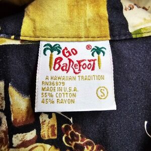 Go Barefoot Shirt Mens Small Black Wine Print Button Up Hawaiian Vacation Resort