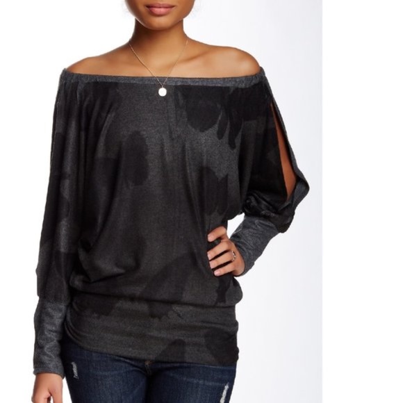Go Couture Printed Off-the-Shoulder Dolman Sweater