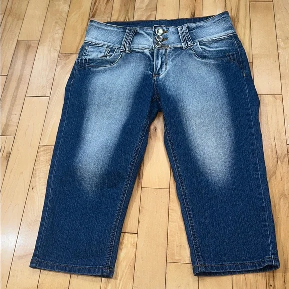Size 11. Elevate your wardrobe with GOGO Star capris. Timeless blue denim. Perfect for versatile styling. Very stretchy.