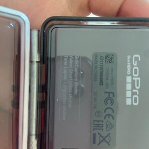 Compact GoPro Hero camera. Sleek black and gray design. Ideal for capturing action shots.