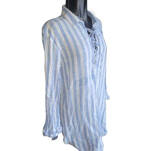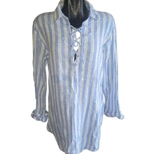 Goa Beachwear by Japna Blue and White Striped Cover Up M