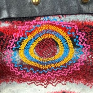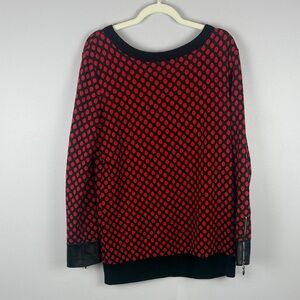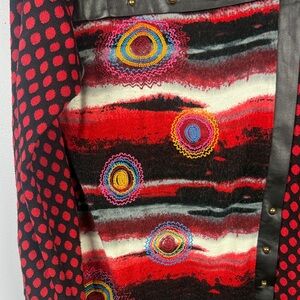 Goa Chic Artsy Red Black Faux Leather Polka Dot Embroidered Detail XL Sweater