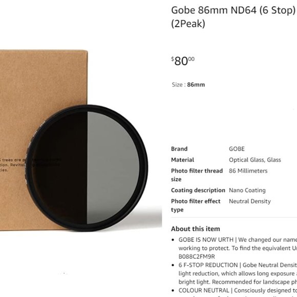 Gobe 86mm ND64 (6 Stop) ND Lens Filter (2Peak)