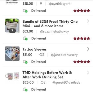 Hi Iβm Laura! Iβm having a great clean out sale. Bundle 3 and get one of them free plus shipping discount and discount offer from me. Check it out! Happy Poshing π