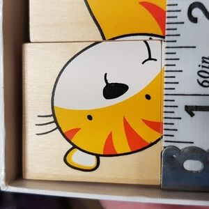 EUC GOKI wood tile puzzles, each set of 4 tiles makes a picture, the tiles do not attach to each other, they are similar to scrabble tiles just thinner and bigger, there are no defects, I see.