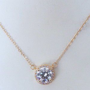 Gold 2 carat Moissanite Halo Pendant Necklace