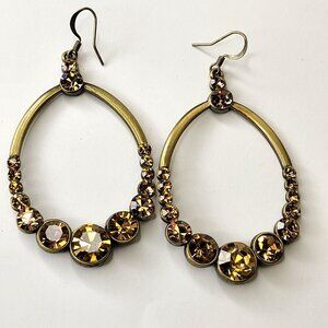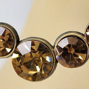 Light amber hues cystals in varying sizes on a antique gold tone oval frame