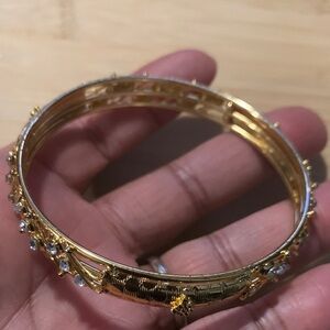 Gold Bangle with Rhinestones