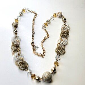 Gold Beads and White Pearls Long Necklace